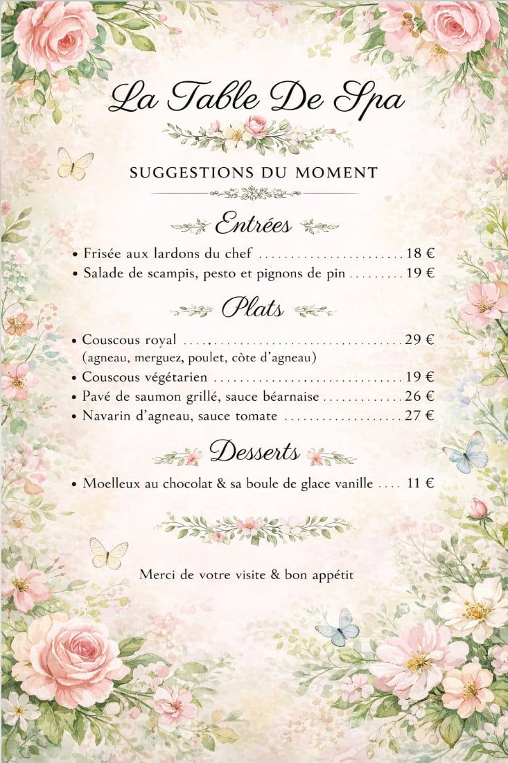 À La Table de Spa, il n’y a d’autre ambition que celle de proposer une cuisine sincère, ancrée dans les saisons, authentique mais moderne, joyeuse et généreuse.